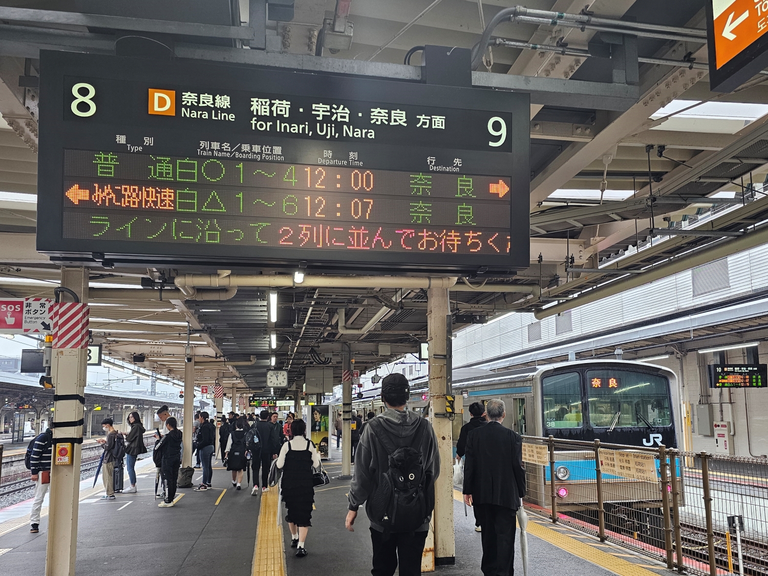 JR교토역은 교토의 교통 중심지답게 다양한 지역으로 가는 열차를 탈 수 있는데 후시미 이나리 신사에 가려면 JR나라선(奈良線)에 탑승해야 한다.
