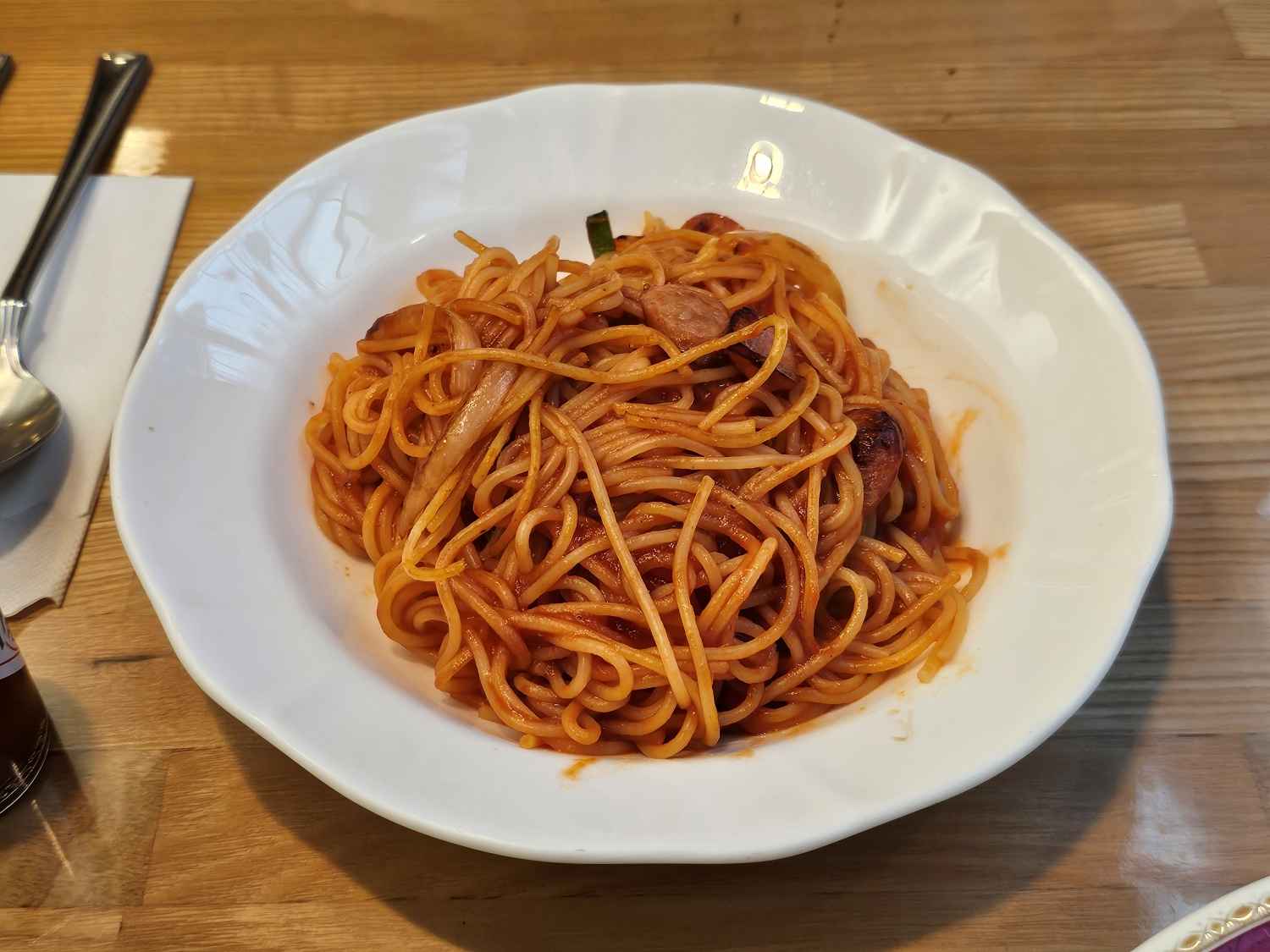 다음은 나폴리탄. 아는 맛이 무섭다고 하지. 일본 킷사텐에 가면 꼭 먹어야 하는 필수 메뉴라고 생각한다. 이 역시 비주얼이 소박했지만 나폴리탄의 친구인 파르메산 치즈와 타바스코를 뿌려서 먹으면 무한정으로 흡입이 가능하다. 일본 살면서 정말 불현듯, 생각날 때가 있는 마성의 나폴리탄. 카스테라 긴소에서도 아주 맛있게 먹었다.