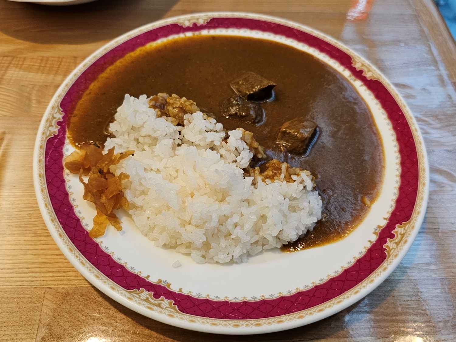 메뉴판에 인기 No.1이라고 쓰여 있던 자가제 카레(自家製カレー)는 일본식 카레를 좋아하는 사람이라면 무조건 좋아할 맛이었다. 우선 카레 자체가 너무 맛있었고 큼직했던 고기도 질 좋은 고기라는 걸 단숨에 알 수 있었다. 오뚜기 카레 매운맛 같은 매운맛은 아니지만 코끝을 살짝 치고 가는 약간의 매운맛이 있어서 마지막까지 질리지 않고 맛있게 먹을 수 있었다.