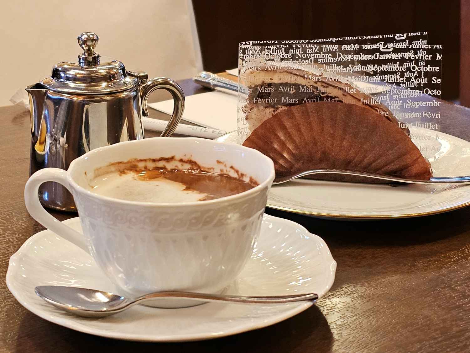 큰 장식 없이 기본에 충실한 케이크 세트, 특히 초콜릿 케이크는 비주얼부터 엄청 진한 초콜릿이라는 걸 알려준다. 평소에 초콜릿 케이크를 좋아하는 사람이라면 필수로 먹어줘야 할 세트 되시겠다.